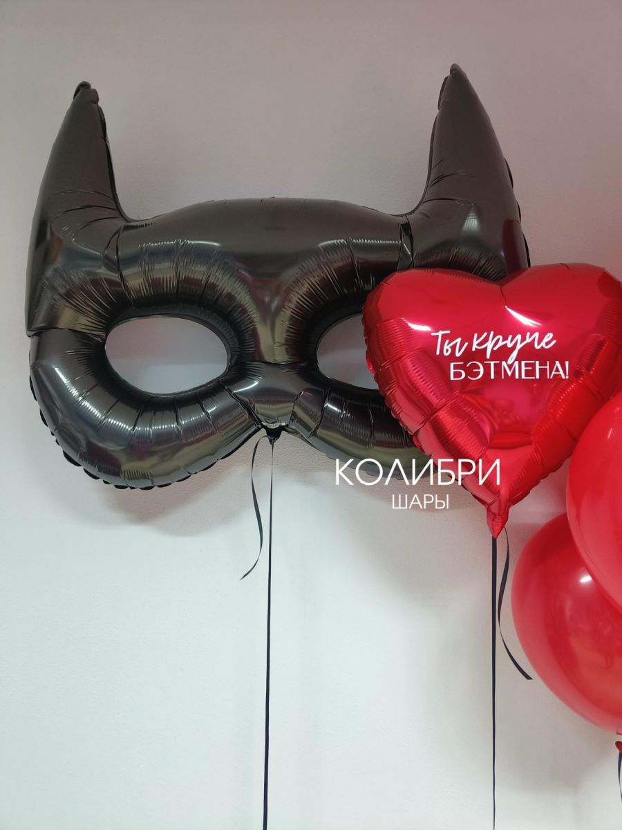 Фольгированный шар Маска и сердце с надписью для него