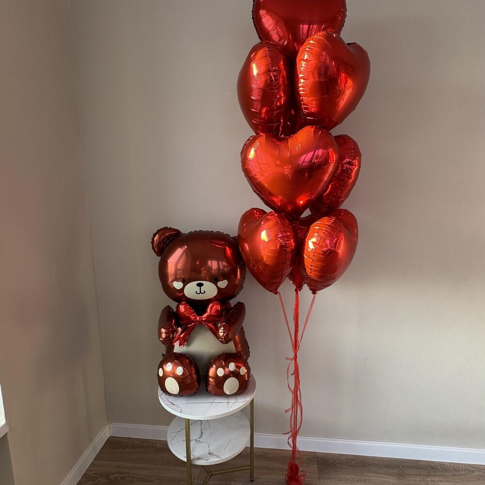 Набор шаров Мишка и 10 сердец