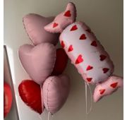 Большое сердце 90 см и связка из 7 фольгированных шаров с надписями