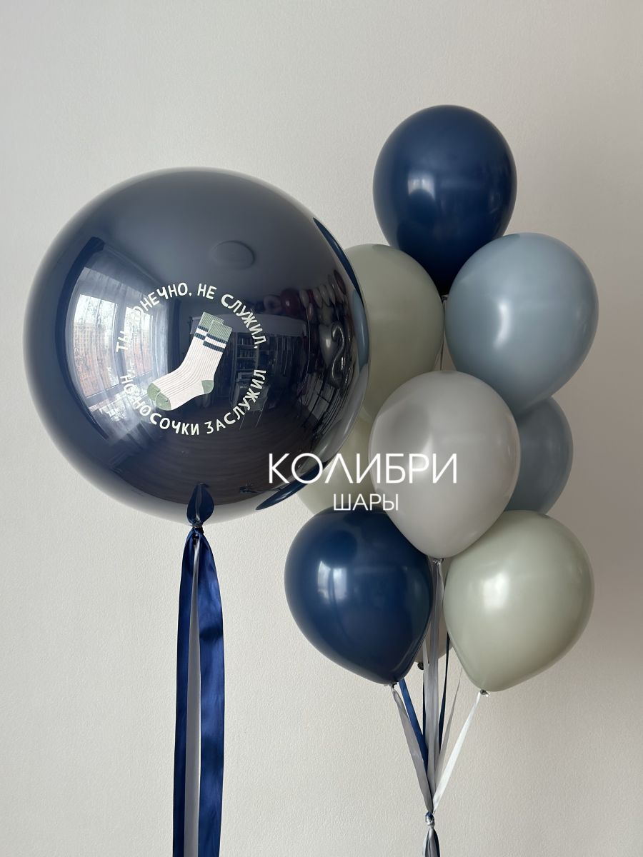 Большая связка шаров на 23 февраля(серебро-чёрный)