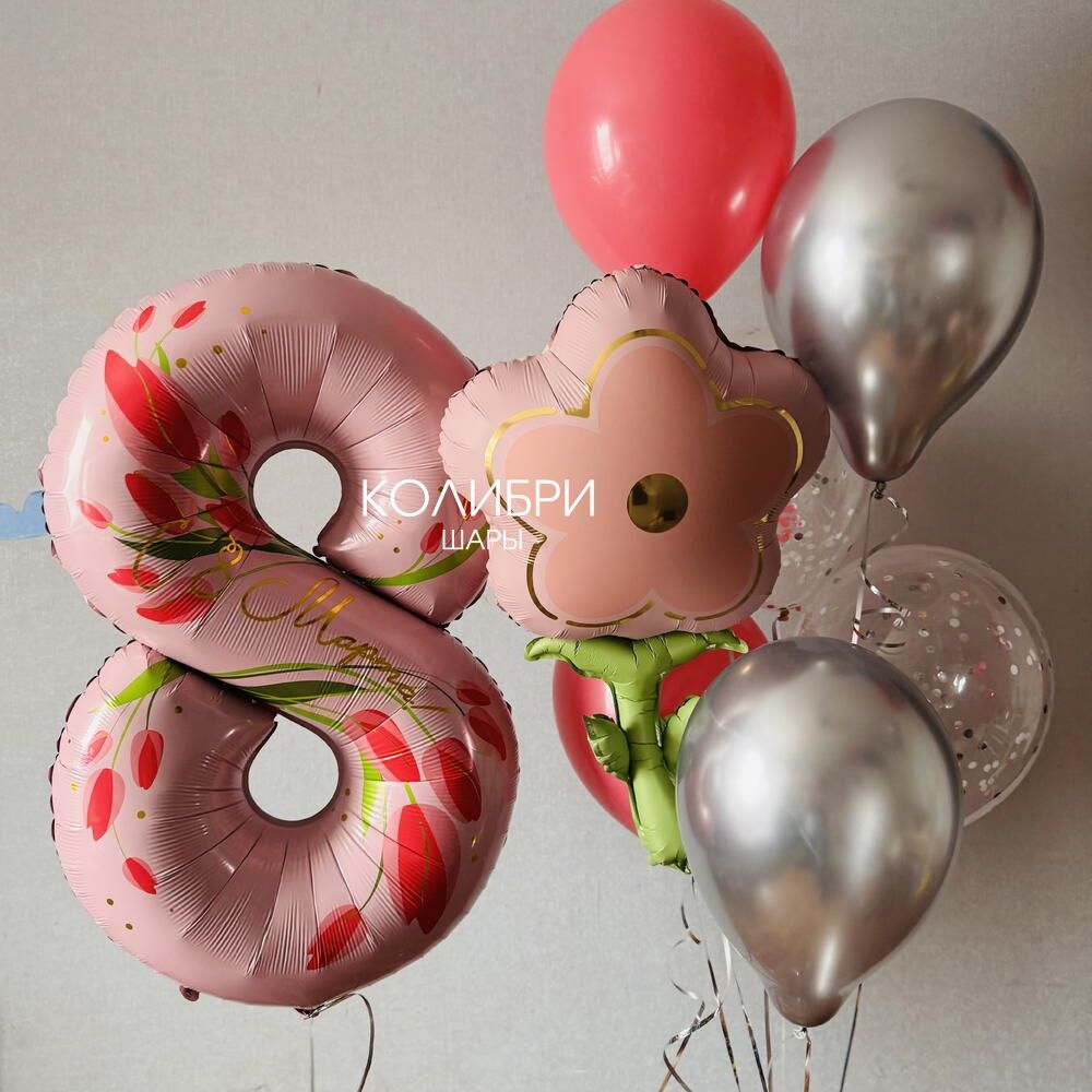 Набор шаров на 8 марта с цифрой и связкой