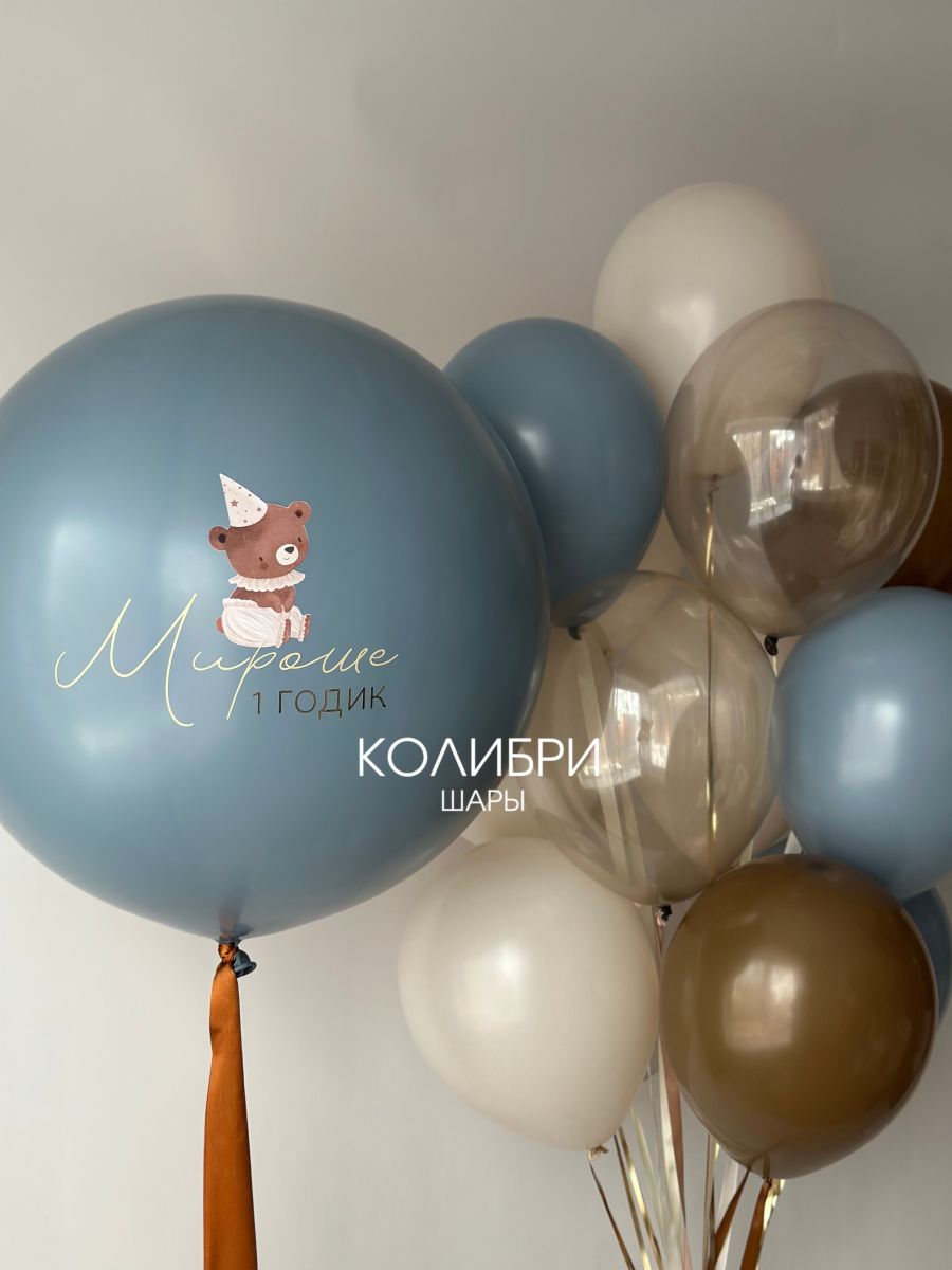 Большой шар с индивидуальной надписью и картинкой, связка из 13 шаров