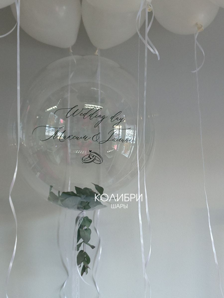 Большой прозрачный шар с надписью и зеленьб, 10 шаров на потолок