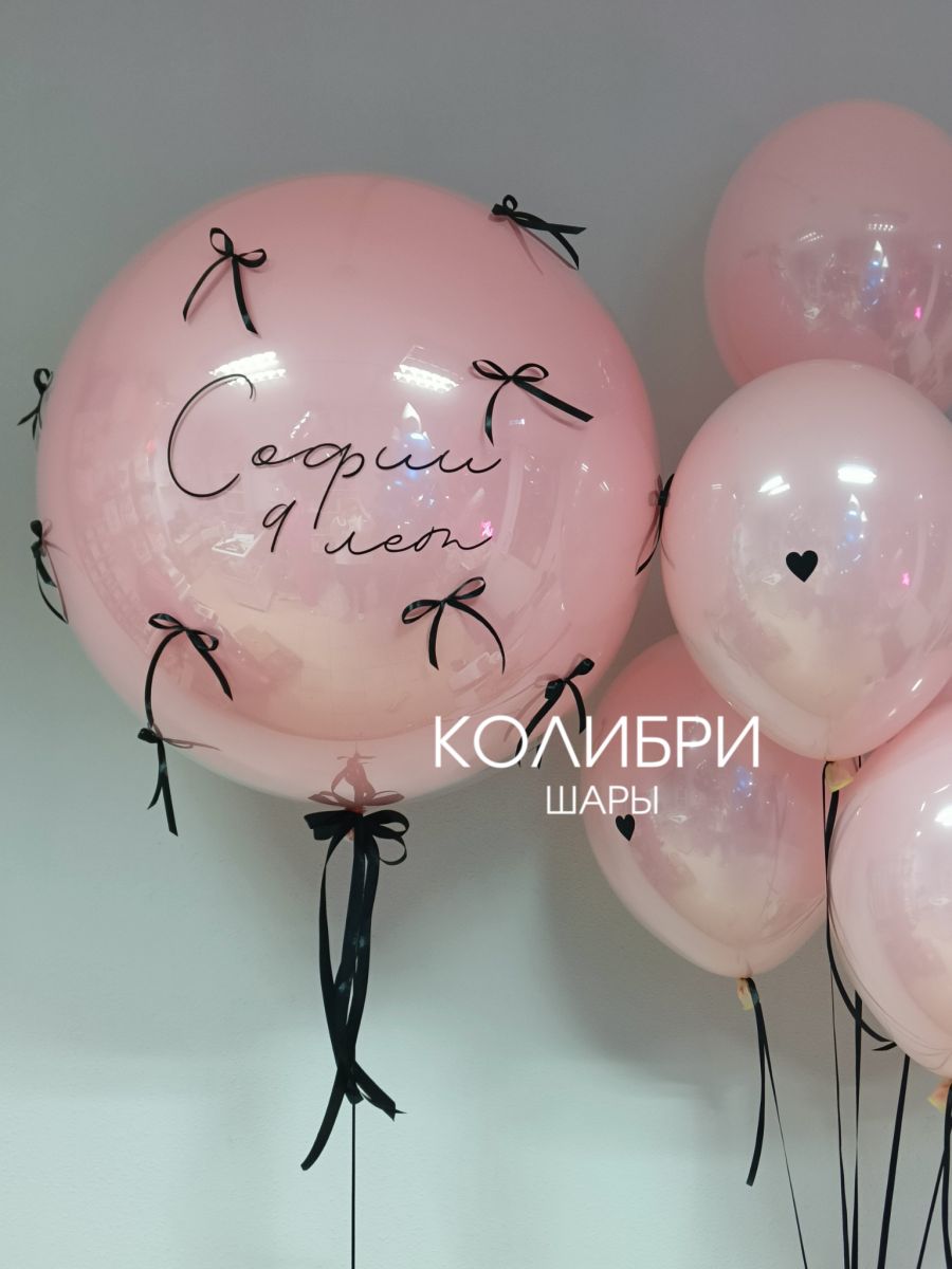 Большой шар 60 см с бантикмаи и связка из 5 шаров