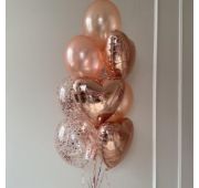Связка из 4 сердцец и 3 латексных шаров, Фольгированная большая роза