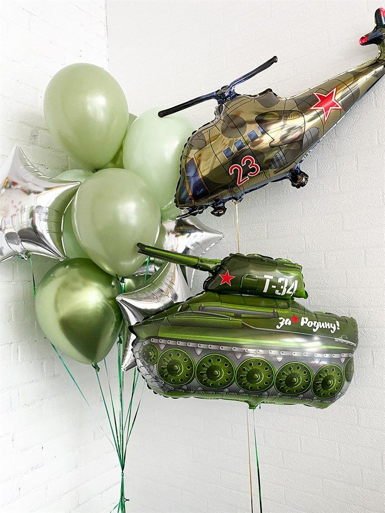 Большая связка шаров на 23 февраля(серебро-чёрный)
