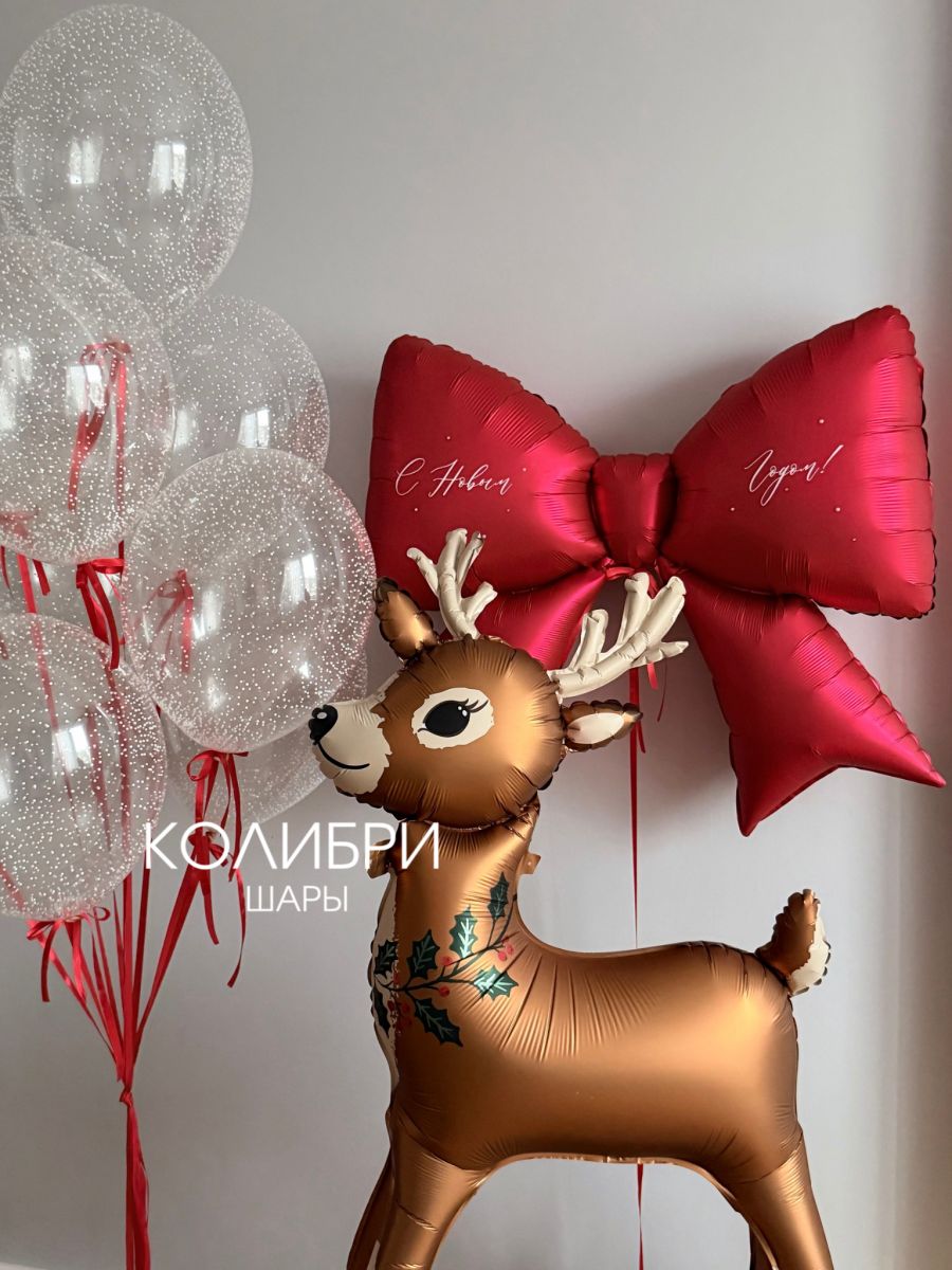 Связка из 8 шаров, фольгированный шар бант, фольгированный шар Олень