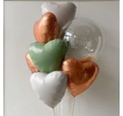 Связка из 7 сердец и большого прозрачного шара