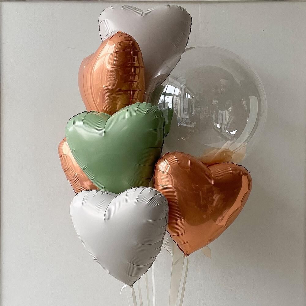 Связка из 7 сердец и большого прозрачного шара